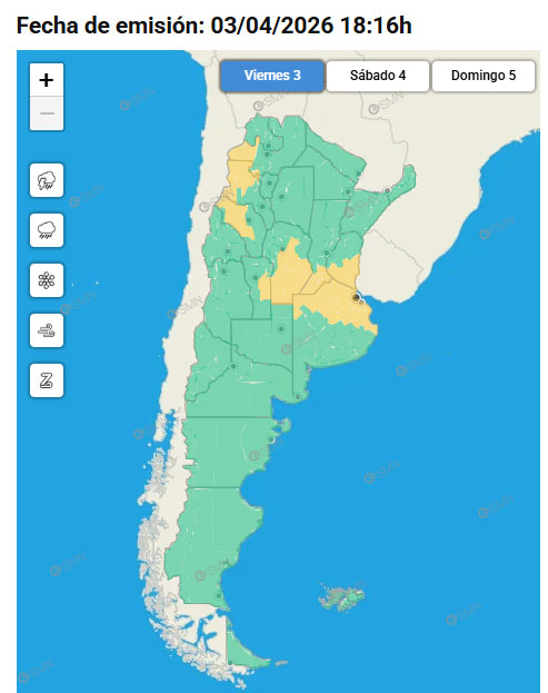 Alerta amarilla por tormentas para siete Departamentos de Entre Ríos